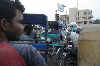 Our first ride on that seemingly doomed vehicle had us holding on for our dear lives! The other machine powered vehicles on the road have absolutely no patience with this measly thing passing as a vehicle! After shrieking honks galore, angry shouts and snarls, and the choicest of abuses thrown at him, the human pedaller would pedal as furiously as he could, using all his reserves of energy, and move aside, and let the beast of a bus or even a not much better kinetic, zoom away! Unfortunately, that's not all! The puny vehicle also has to circumnavigate around buses and trucks that decide that driving on the wrong side, nay, from the wrong direction even, is their birthright! This leaves the rickshaw squirming and its tyres squealing, to quickly move out of the way of a sure head on collision! After braving all this a couple of times, all the time praying that my accident prone self does not deem it right to raise its ugly head those very times, my friend and I decided to give the whole thing a miss and rely on our faithful limbs instead! So walk we did, the whole of the stretch. With the sun being extremely considerate and us smelling like two freshly rolled in the mud pigs, the next day saw us holding onto the flimsy sides of the measly vehicle once again! So much for bravado! Of course, we did have to hit something after five days of riding on those vehicles of death! So hit we did, on the last day of our stay in Noida, and as an added bonus, not one, but two monstrous (by comparison) vehicles! Thankfully, it was not a hit hit, more like a kiss on the bumper of a car and a smooch on the bonnet of a truck! Phew!